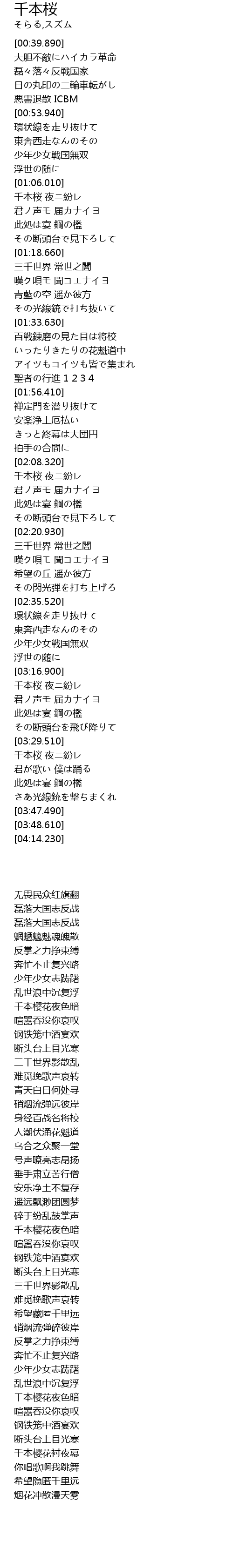 | [03:29.650] | 千本桜 夜ニ紛レ |