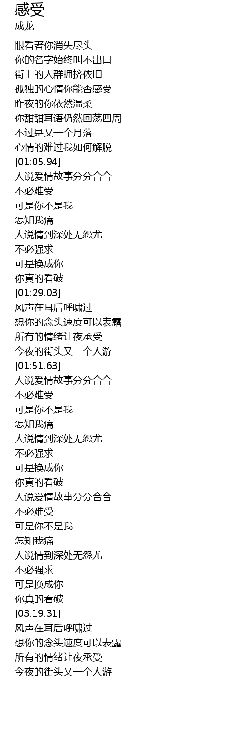 | [00:38.66] | 孤独的心情你能否感受 |