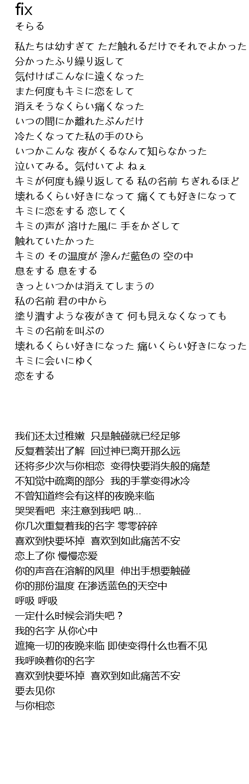 | [00:24.05] | 私たちは幼すぎて ただ触れるだけでそれでよかった |
