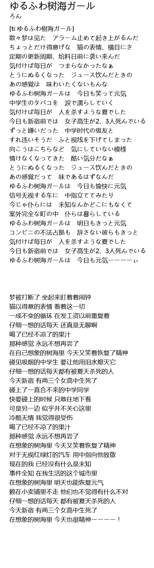 | [02:33.803] | ゆるふわ树海ガールは 今日も元気ーーーーぃ |