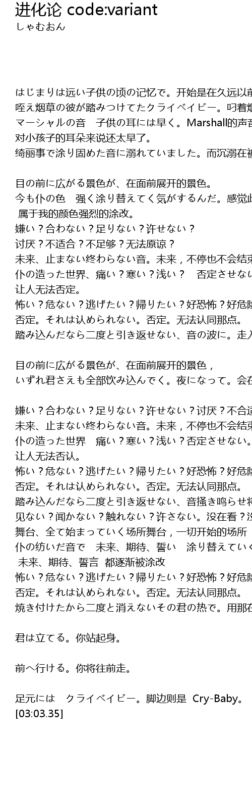 | [02:33.82] | 怖い?危ない?逃げたい?帰りたい?好恐怖?好危险?好想逃?好想回去? |