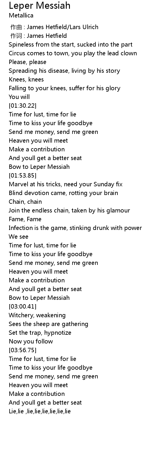 | [01:49.94] | Bow to Leper Messiah |