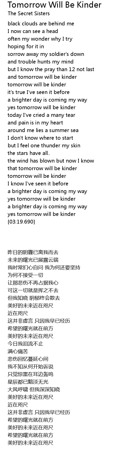 tomorrow will be kinder |