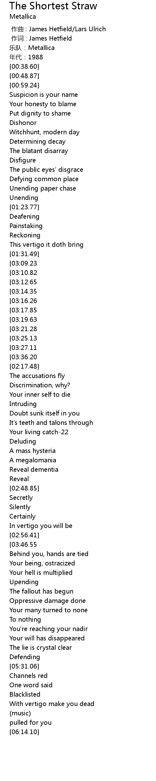 | [00:00.00] | 作曲 : James Hetfield/Lars Ulrich |