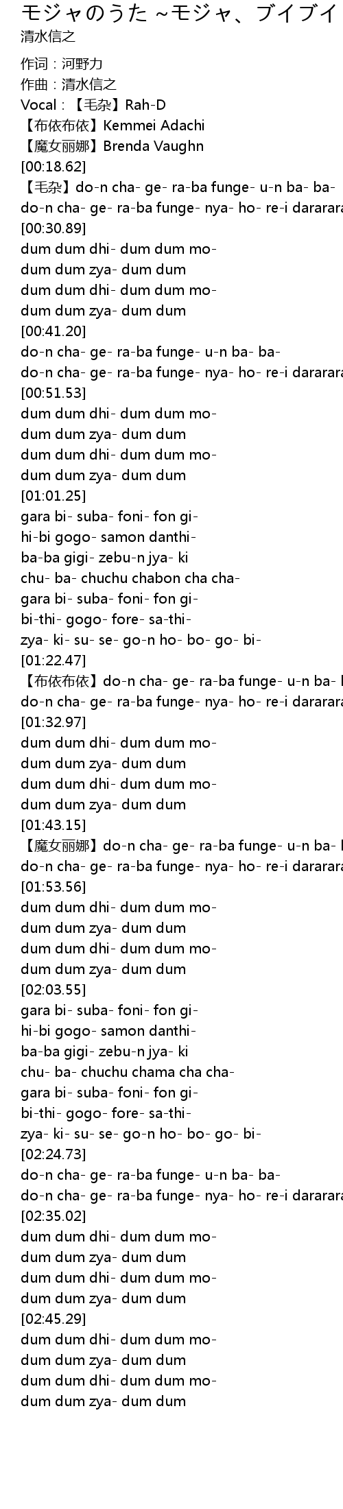 | [01:22.73] | bù yī bù yī don cha ge raba funge un ba ba |