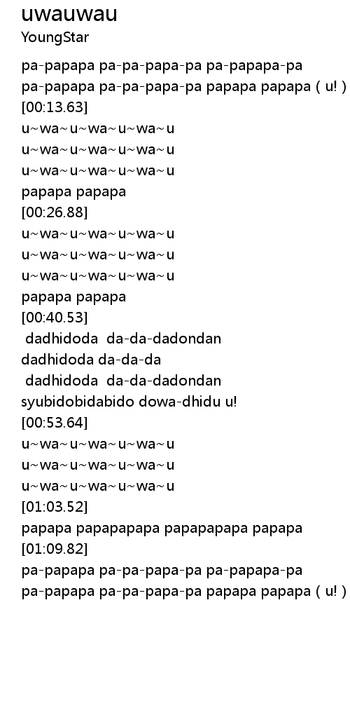| [00:20.66] | u~wa~u~wa~u~wa~u |