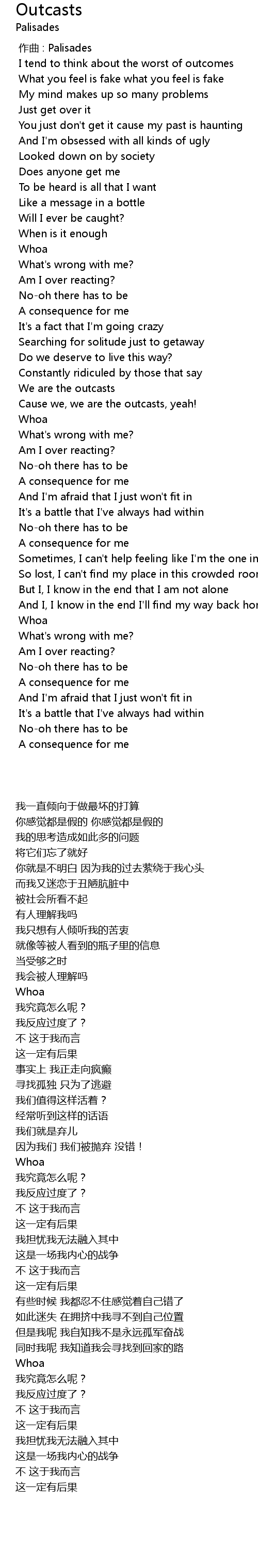 | [00:00.000] | zuò qǔ : Palisades |