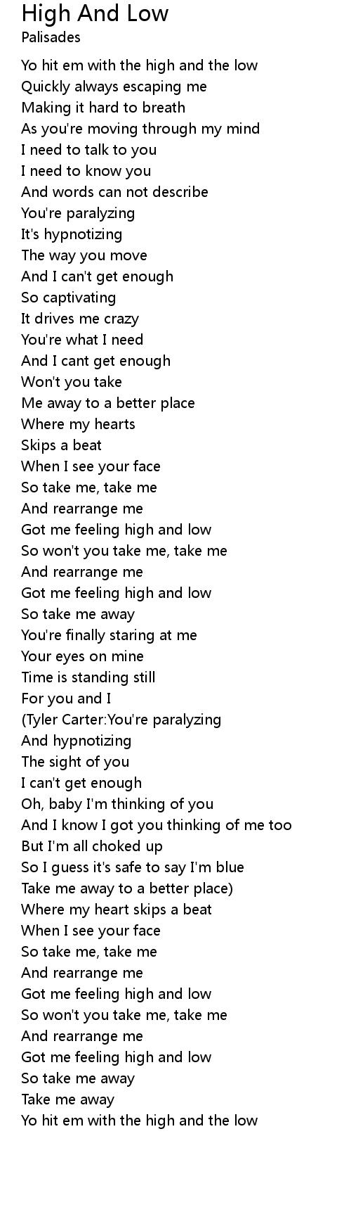 | [02:41.22] | Got me feeling high and low |