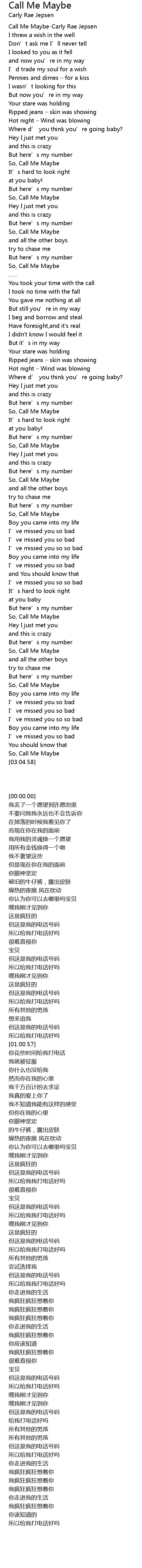| [00:00.00] | Call Me Maybe-Carly Rae Jepsen |