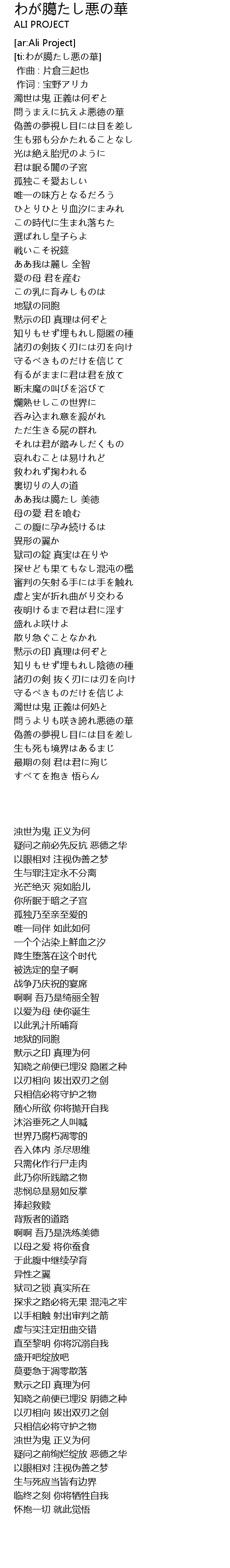 | [00:22.520] | 問うまえに抗えよ悪徳の華 |