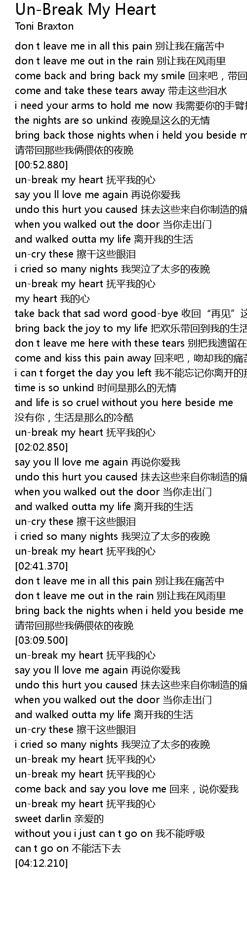| [03:48.110] | un-break my heart 抚平我的心 |