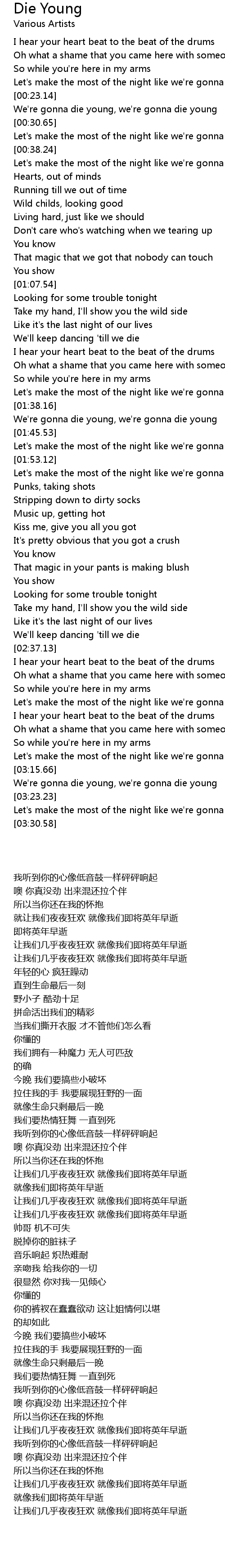 Let's make the most of the night like we're gonna die young |