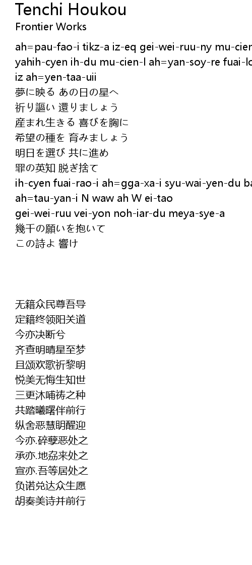 | Song | Tenchi Houkou |