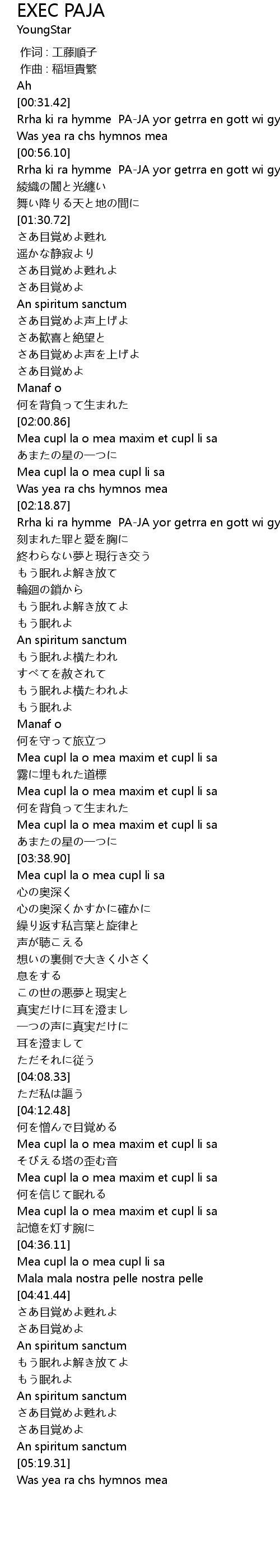 | [02:08.43] | Was yea ra chs hymnos mea |