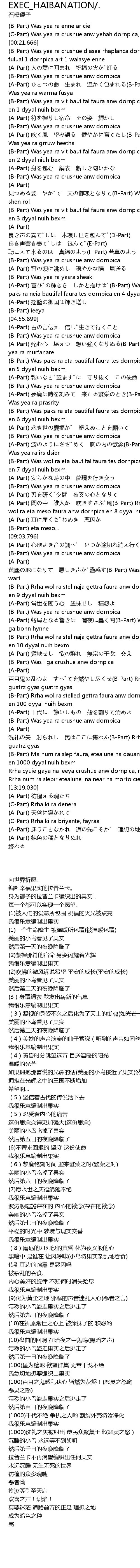 | [06:27.575] | (A-Part) 夢魔は時を刻みて 来たる繁栄のとき(B-Part) Was yea ra prasrity |