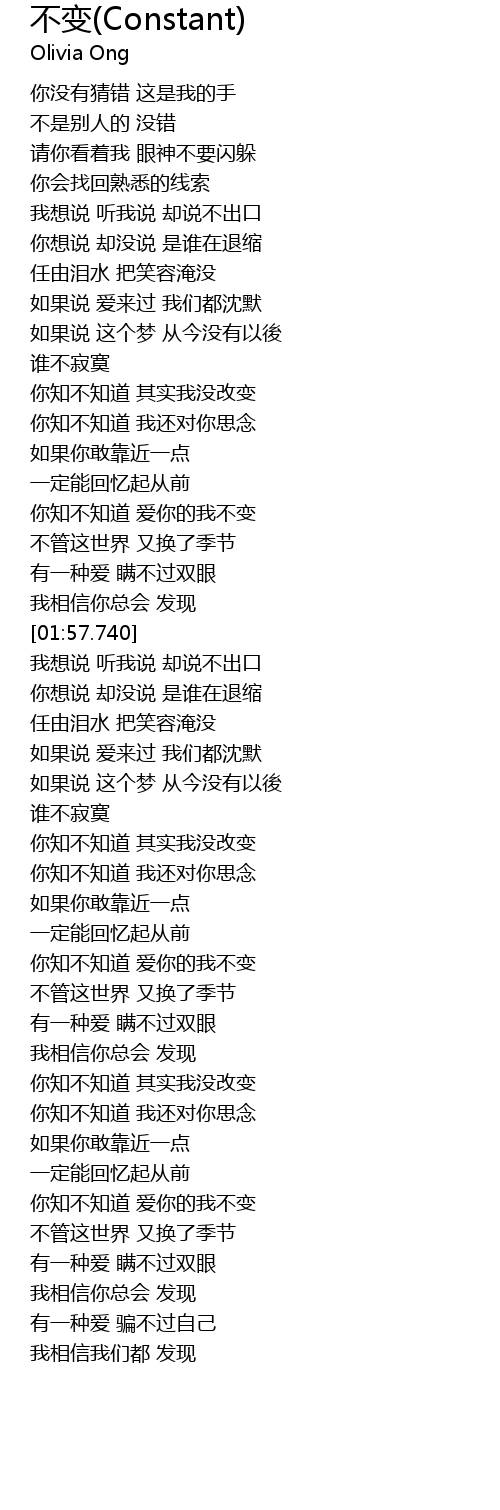 | [01:38.170] | 你知不知道 爱你的我不变 |