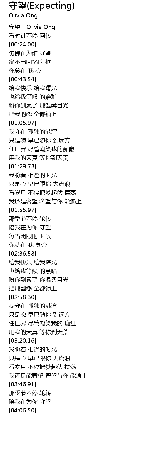 | [00:00.00] | shǒu wàng Olivia Ong |