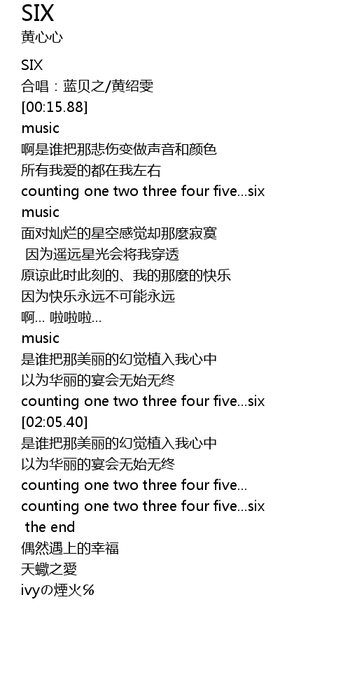 | [00:10.03] | 合唱:蓝贝之/黄绍雯 |