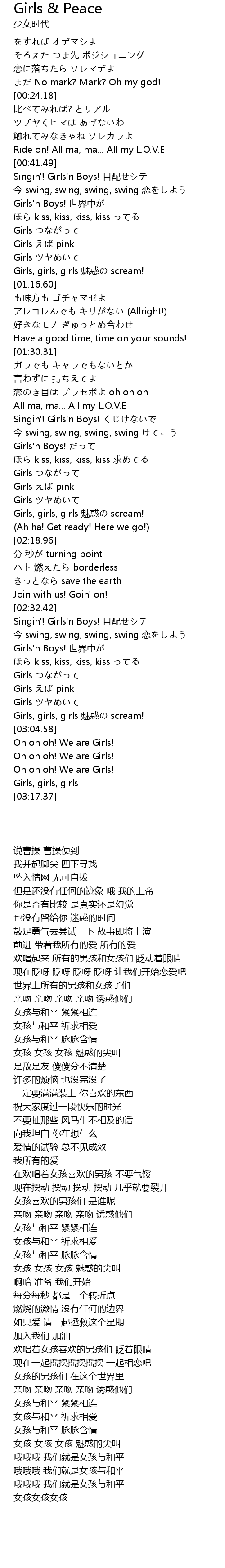 | [02:43.48] | Girls' n Boys! shì jiè zhōng |