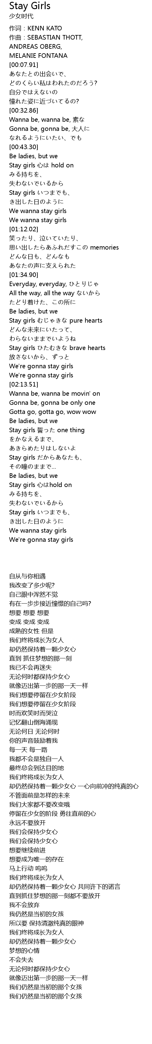 | [01:46.51] | Stay girls むじゃきな pure hearts |