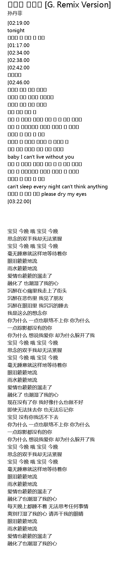 | [02:26.00][02:19.00][01:13.00][01:06.00][00:14.00][00:07.00] | baby tonight oh baby tonight |