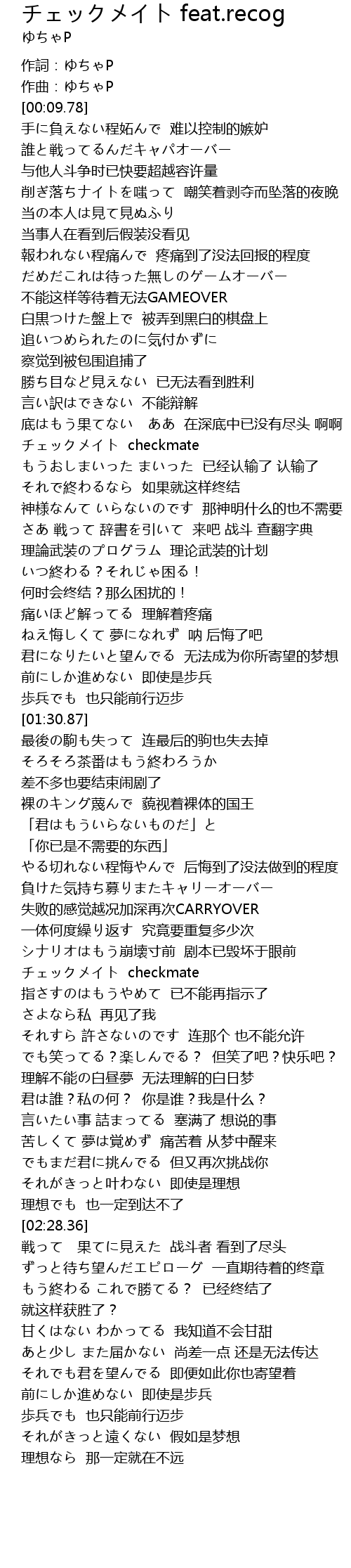 | [01:58.13] | チェックメイト checkmate |