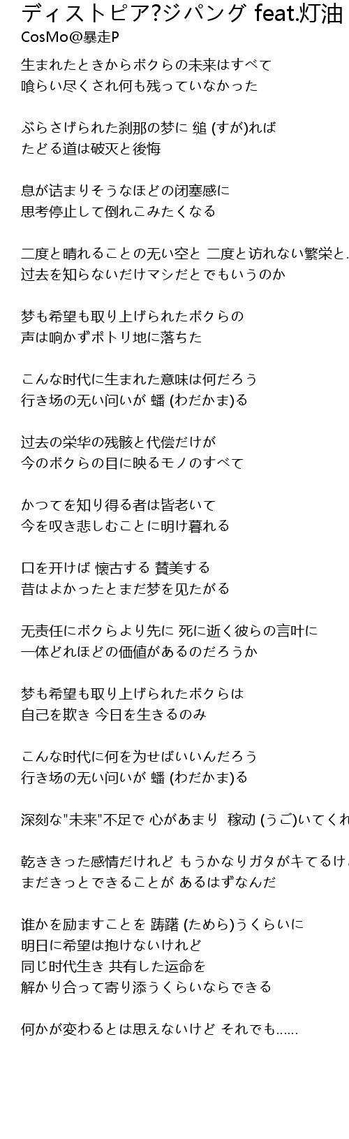 | Song | ディストピア?ジパング feat.灯油 |