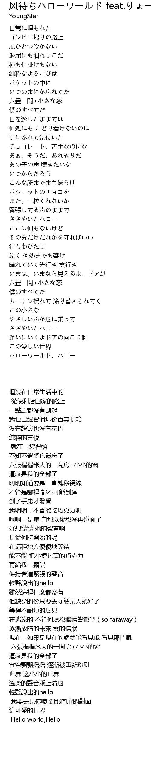 | Song | 风待ちハローワールド feat.りょーくん |