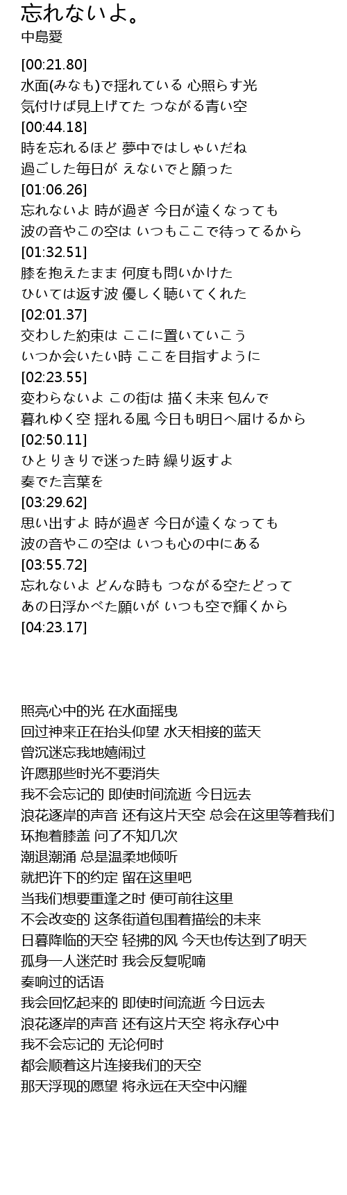 | [01:17.50] | 波の音やこの空は いつもここで待ってるから |