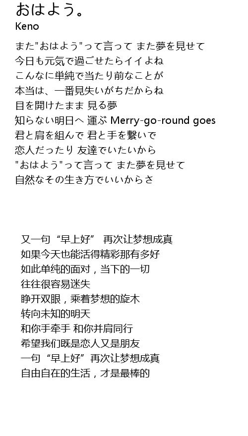 | [00:04.020] | また"おはよう"って言って また夢を見せて |