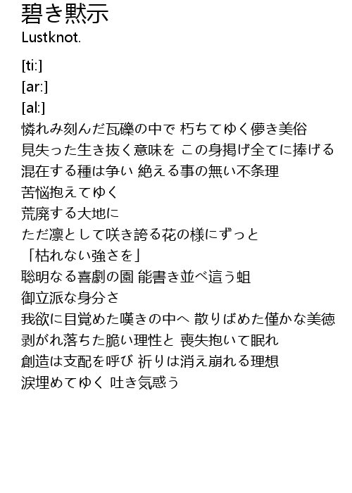 | [00:32.76] | 憐れみ刻んだ瓦礫の中で 朽ちてゆく儚き美俗 |