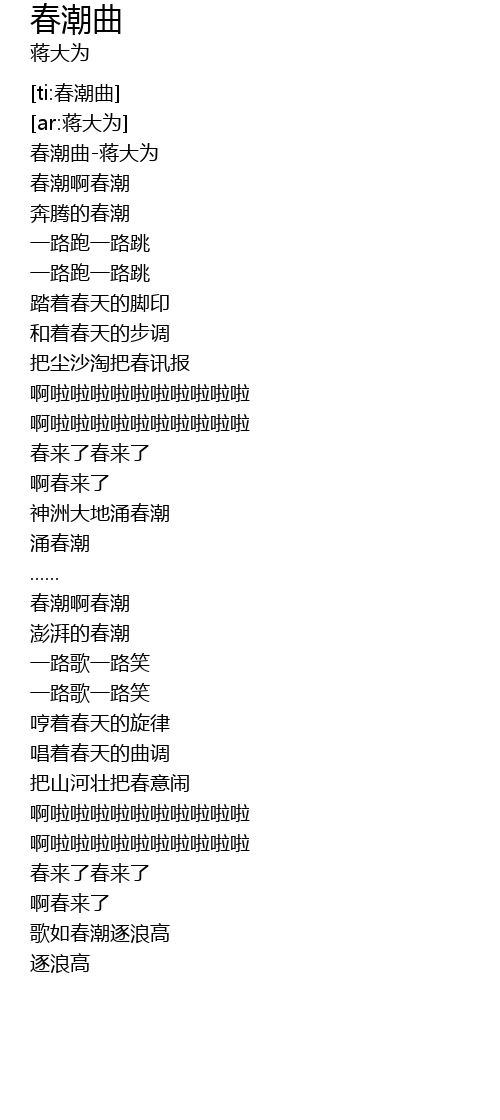 | [00:04.121] | 春潮曲-蒋大为 |