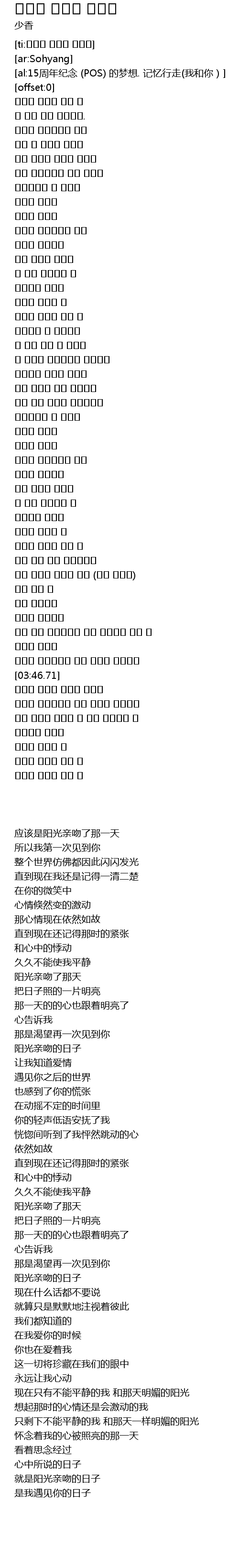 | [04:15.70] | 햇살이 입맞춤 하던 날 |