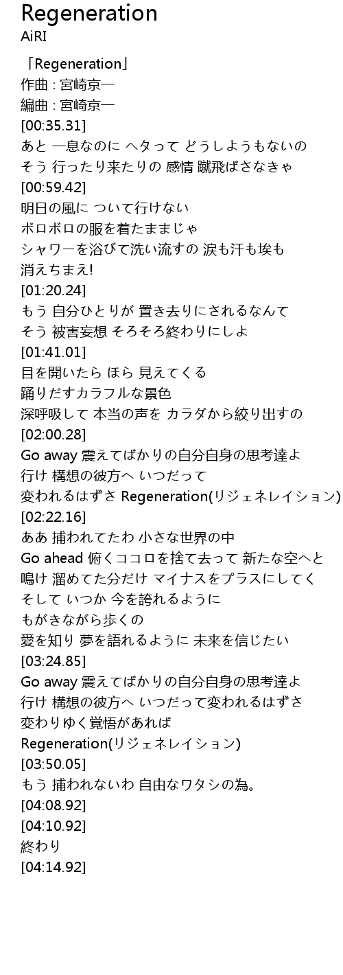 | [00:00.31] | 「Regeneration」 |