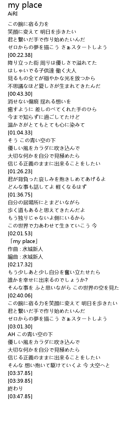 | [01:37.40] | 自分の居場所にとまどいながら |