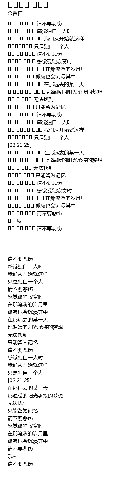 | [03:36.27] | 슬퍼 하지 말아요 请不要悲伤 |