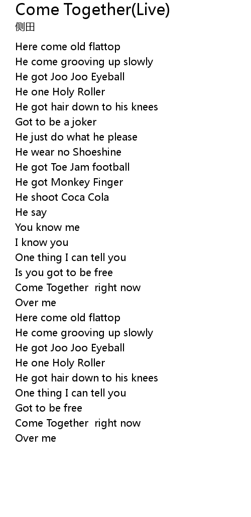 Come Together right now |