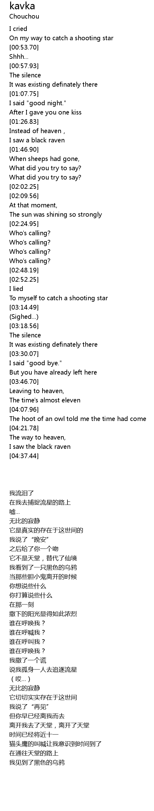 | [04:08.52] | The hoot of an owl told me the time had come |