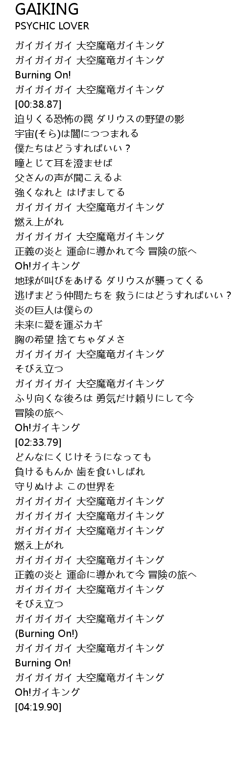 | [03:53.25] | ガイガイガイ 大空魔竜ガイキング |