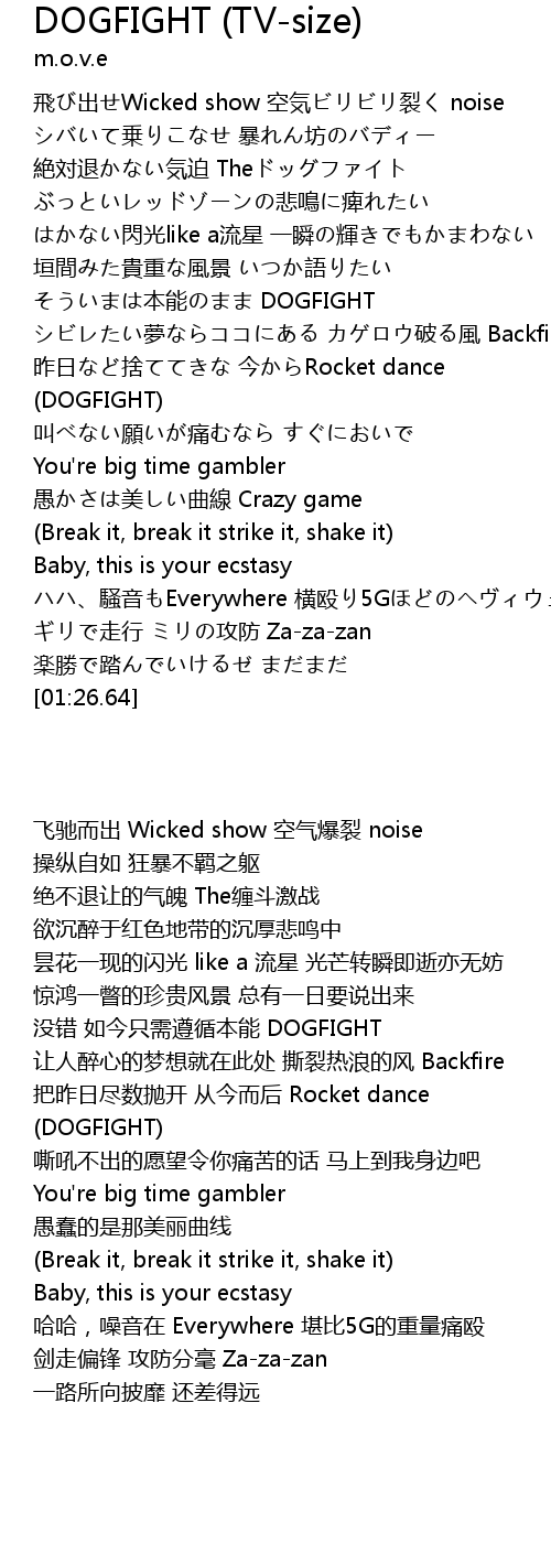 | [00:42.79] | そういまは本能のまま DOGFIGHT |