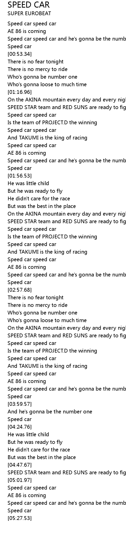 SPEED CAR Lyrics