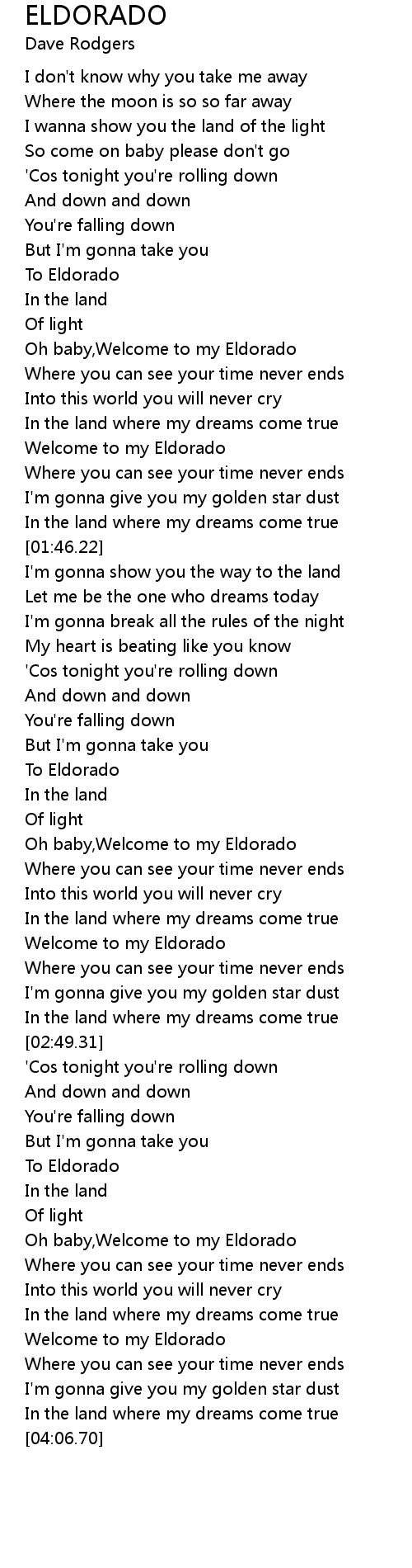 Oh baby,Welcome to my Eldorado |