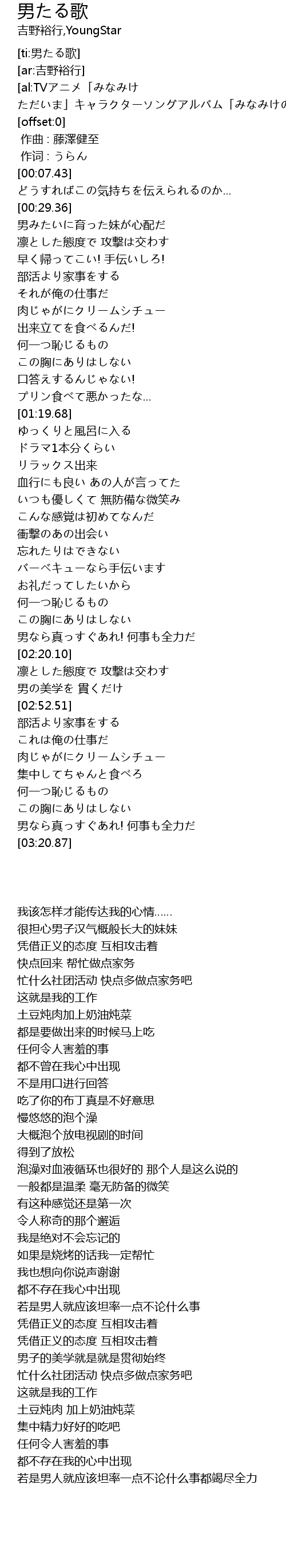 | [03:14.06] | 男なら真っすぐあれ! 何事も全力だ |