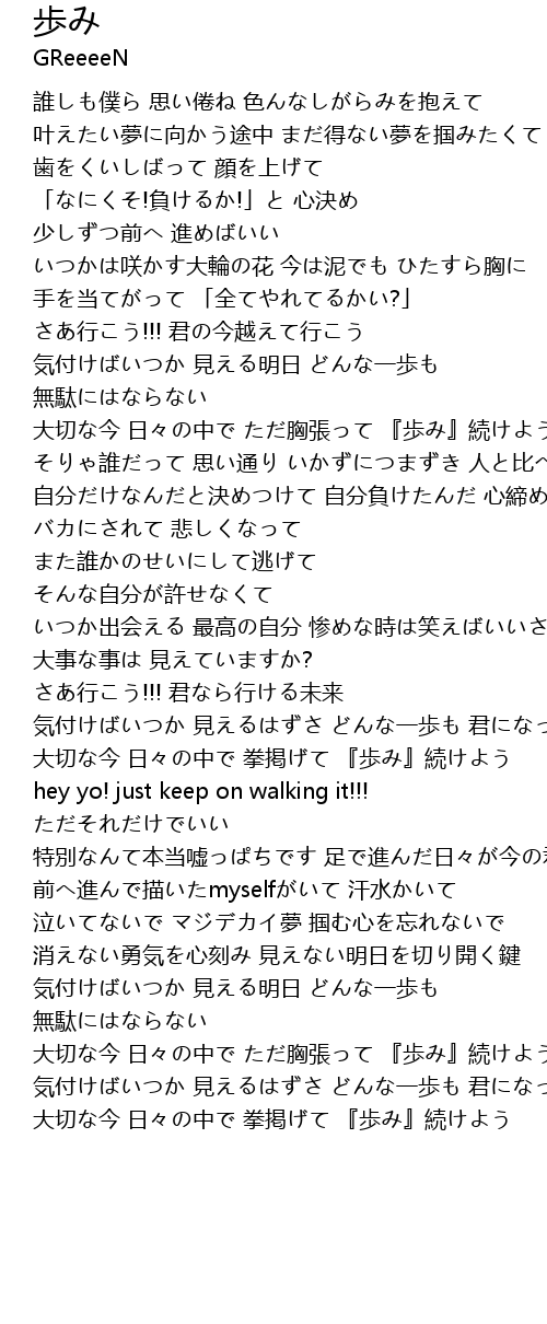 | 大切な今 日々の中で ただ胸張って 『歩み』続けよう | |