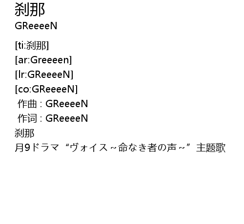 | [00:06.52] | 月9ドラマ“ヴォイス~命なき者の声~”主题歌 |