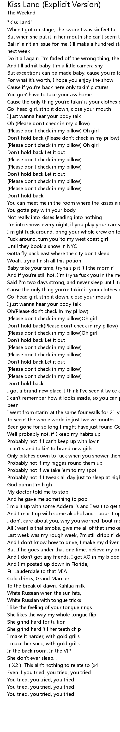 | [01:32.52] | (Please don't check in my pillow) Oh girl |