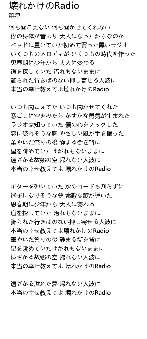 | 本当の幸せ教えてよ 壊れかけのRadio |