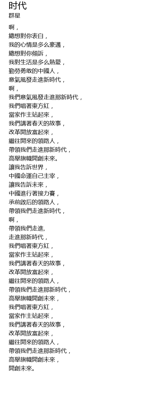 | [00:58.79] | 意氣風發走進新時代, |