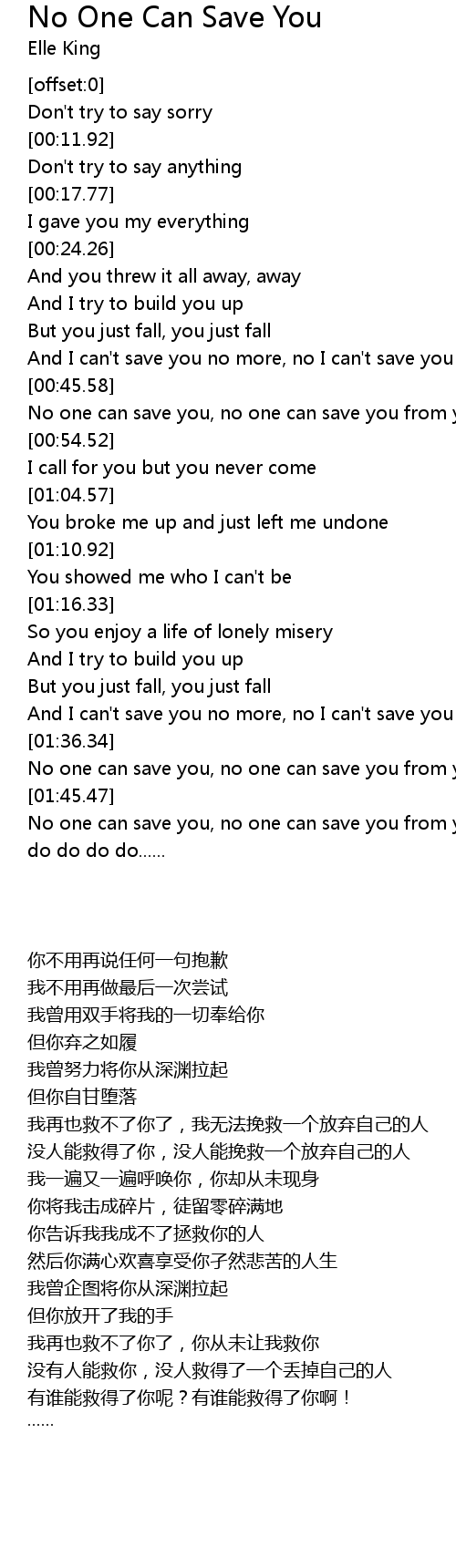 No one can save you, no one can save you from yourself |