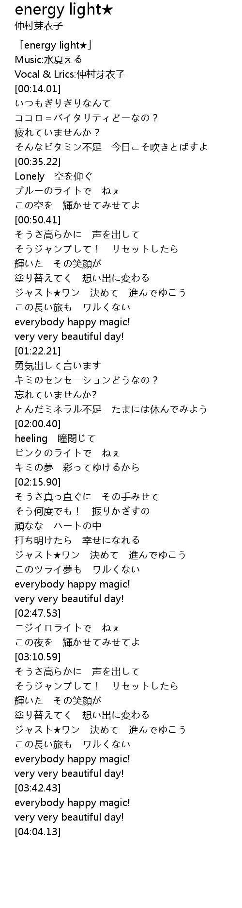 | [00:09.79] | Vocal & Lrics:仲村芽衣子 |